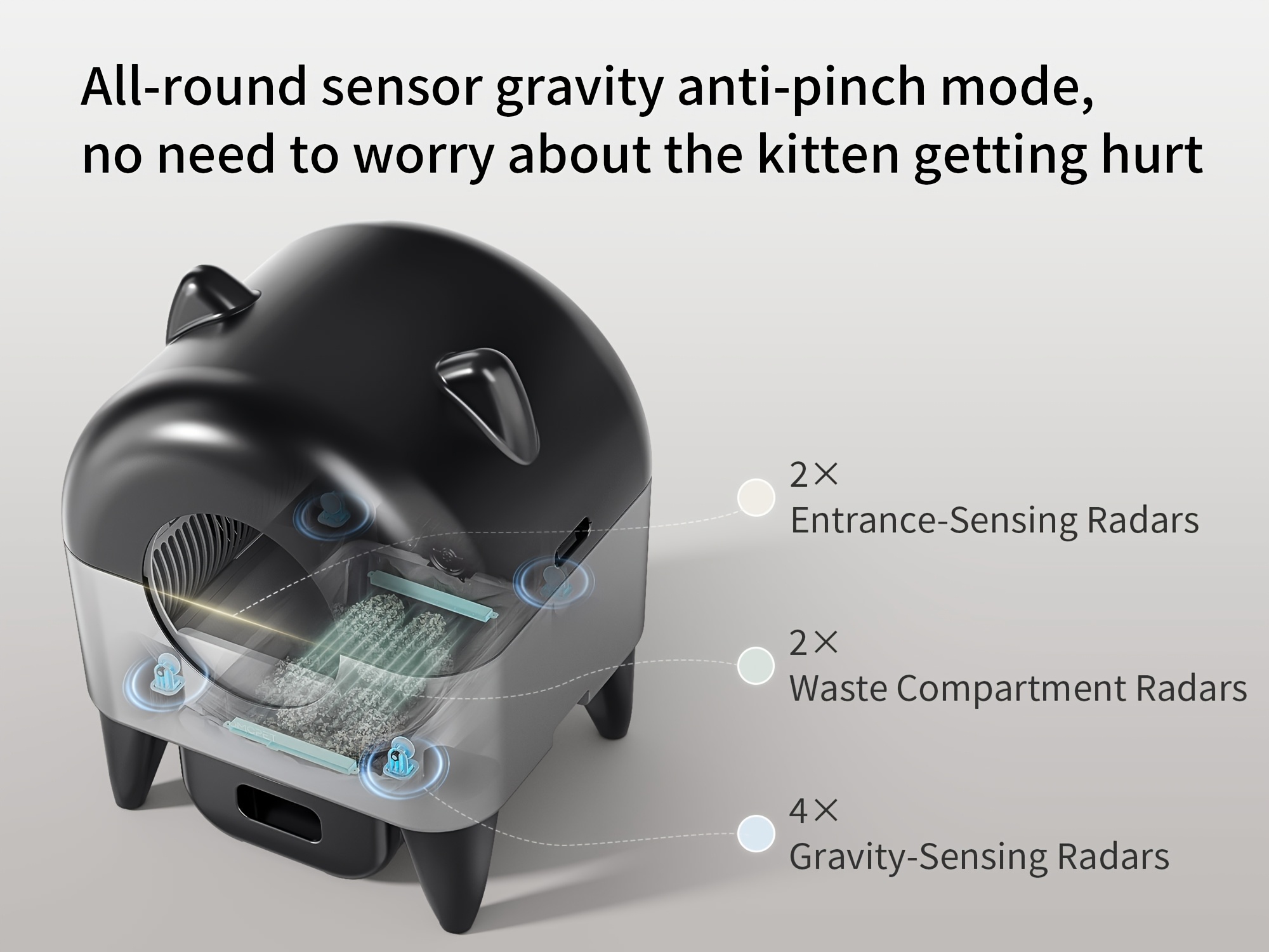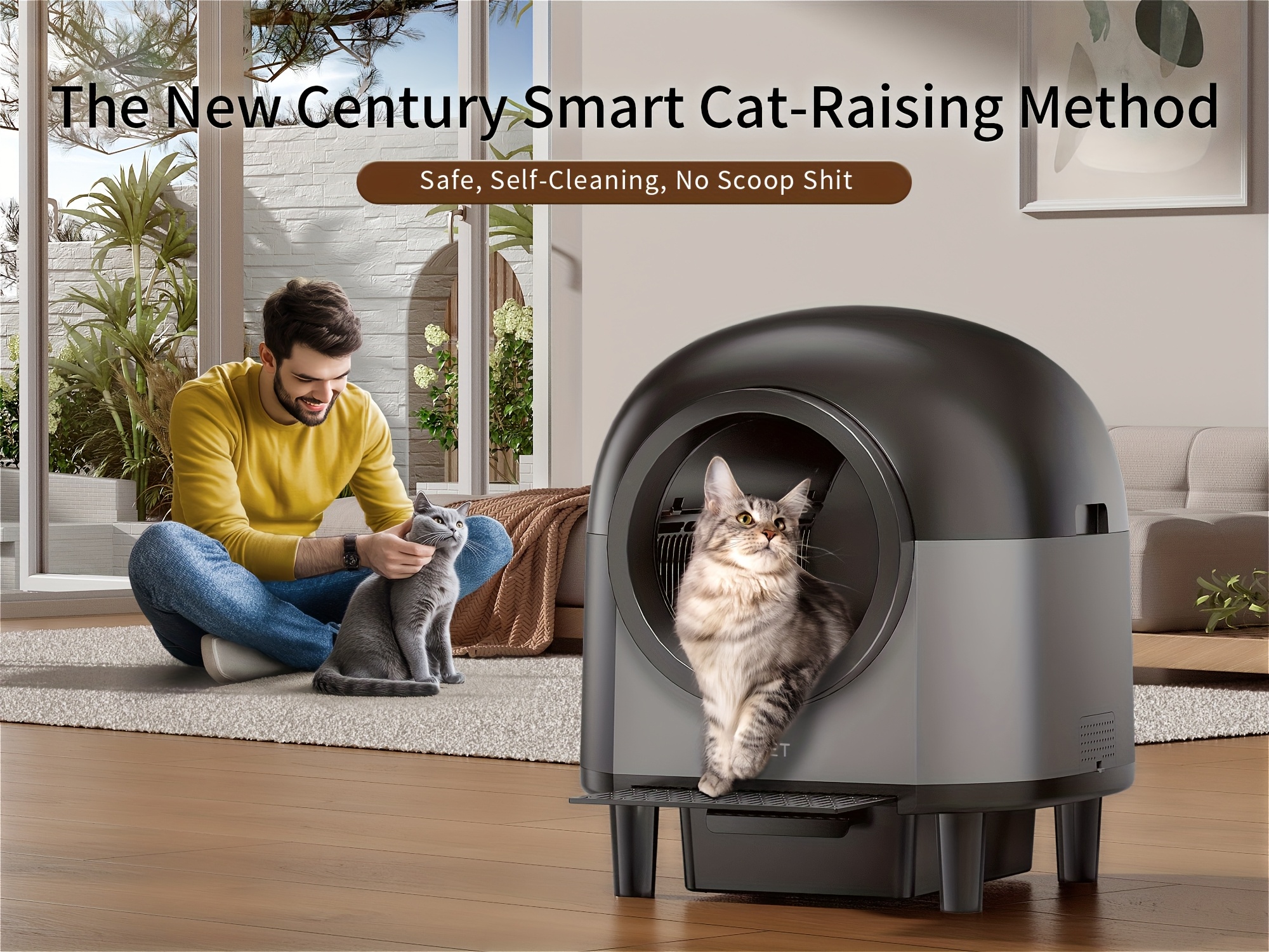 Say goodbye to embarrassing odors when guests visit. Our advanced waste management system features a completely sealed waste compartment that locks in odors and bacteria. Combined with automatic cleaning after each use, your home will smell fresh and clean—even with multiple cats. Finally, you can place the litter box anywhere in your home without worry.