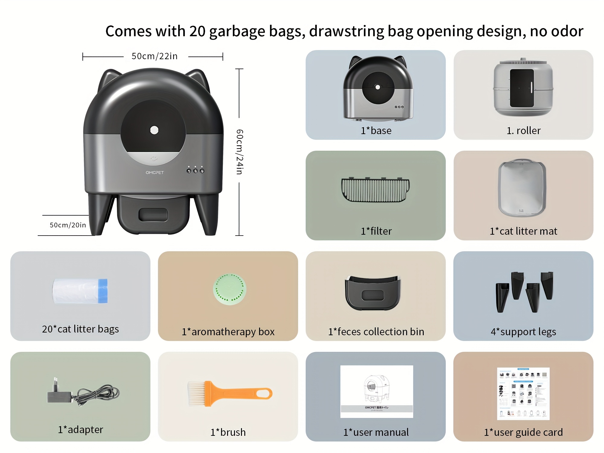 Introducing the OMCPET Extra-Large Automatic Cat Litter Box—engineered for homes with multiple cats and designed for pet parents who demand the best. With advanced WiFi app control, soothing ambient lighting, and a revolutionary odorless waste management system, this premium litter robot transforms cat care from a daily chore into a seamless, worry-free experience.