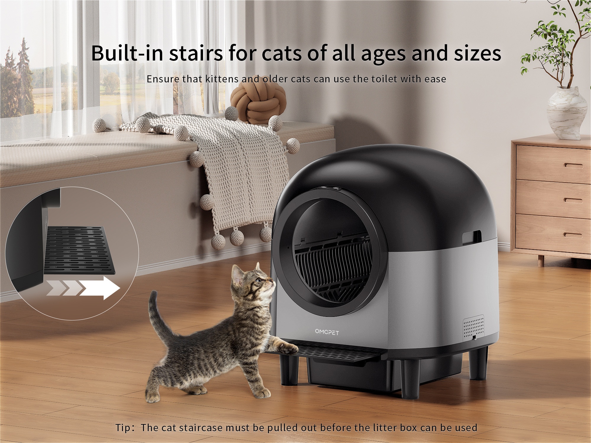 - Ambient LED Lighting: Soft, customizable lighting helps cats find their way at night and adds a modern touch to your home