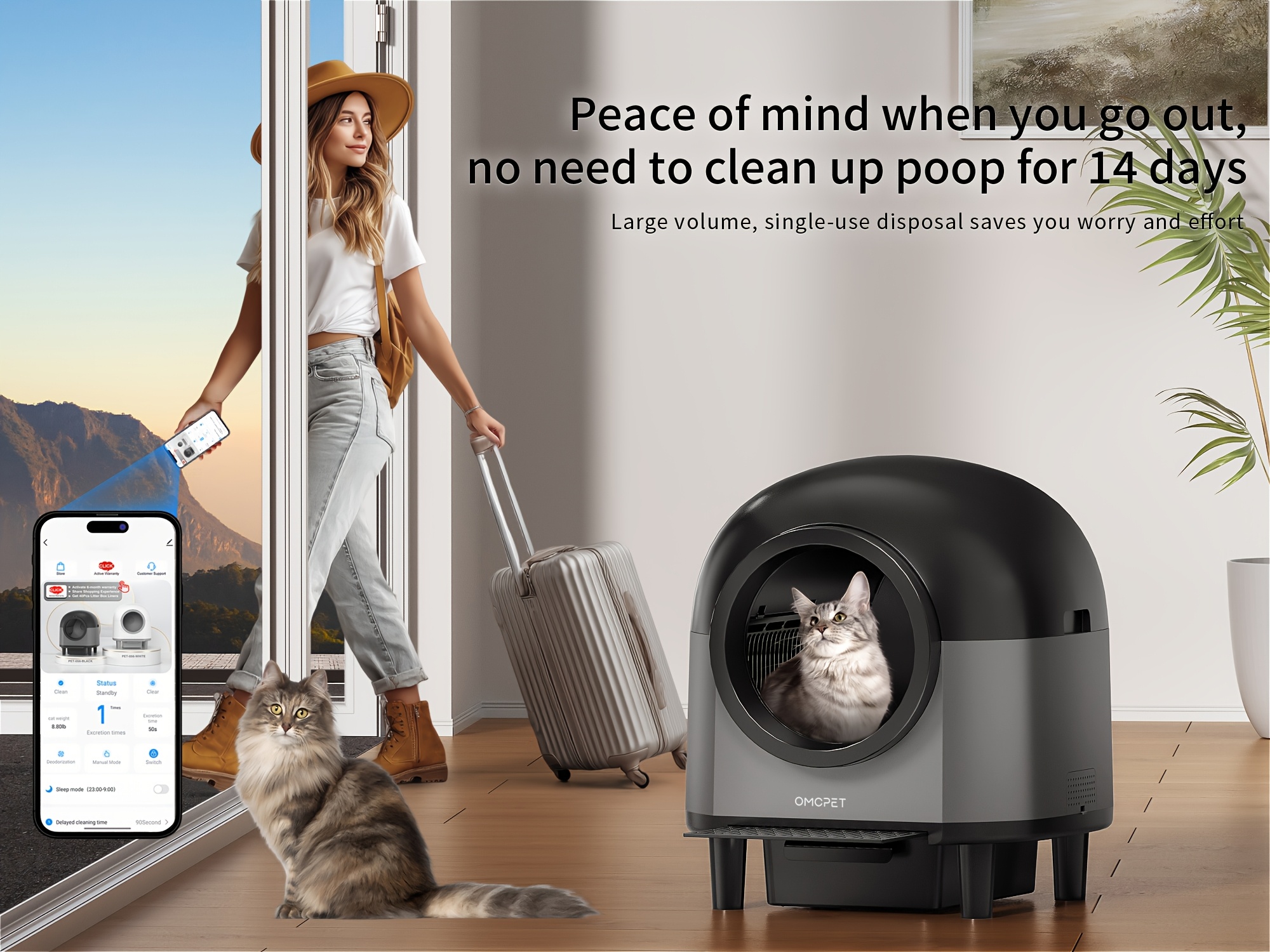 OMCPET Extra-Large Automatic Cat Litter Box - WiFi App Control with Ambient Light & Odorless Waste Management